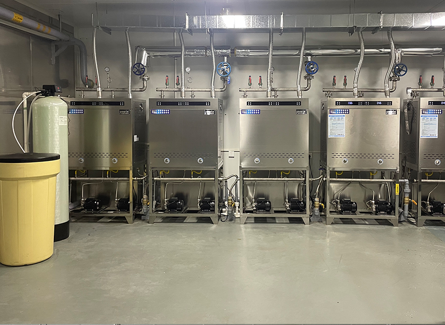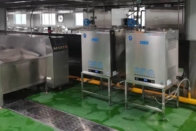 漢中中央廚房項目,配的洗筐機,蒸箱和瓢湯線
