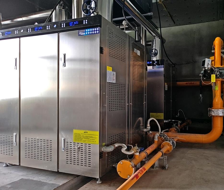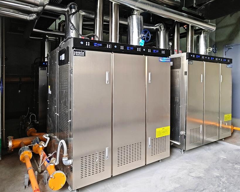 廣州逅廚食品加工客戶,由我們設計施工的1.6噸蒸汽項目,今天過來調式,我們現直奔設備間,采用多臺卓益蒸汽發生器,模塊化設計,潔凈高溫蒸汽,鋁皮保溫,安裝工藝很奈斯,4公斤蒸汽壓力,主要為洗碗機、洗框機、夾層鍋,蒸箱,洗鍋機、蒸汽回轉鍋、真空速冷機等供蒸汽!